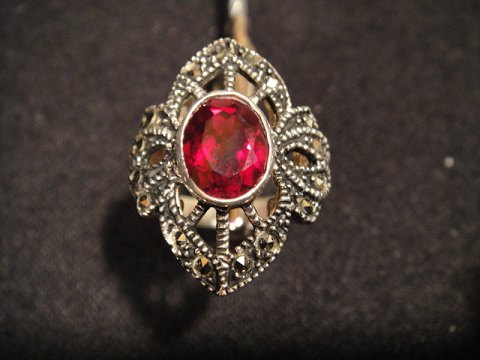 silver ring with a big beautiful ruby. 925 sterling silver Ring size 57 Price $: 240, - sold