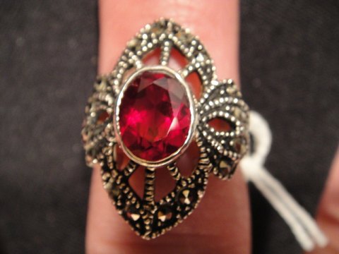 silver ring with a big beautiful ruby.