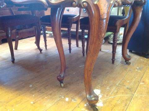 men der er kun 1 tillægsplade med sarg og 5 stole der passer til bordet + 4 andre
