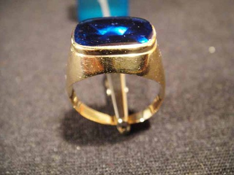 Herren-Ring mit blauen Turmalin. størrelse.61 Durchmesser. 20 mm. Gold-8k HSHS.
