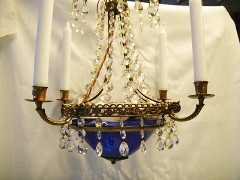 under kronen påmonteret blå glasskål.