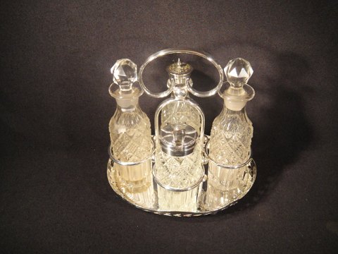 Plat de menage med sennep, salt,Olie og Eddike flaconer.