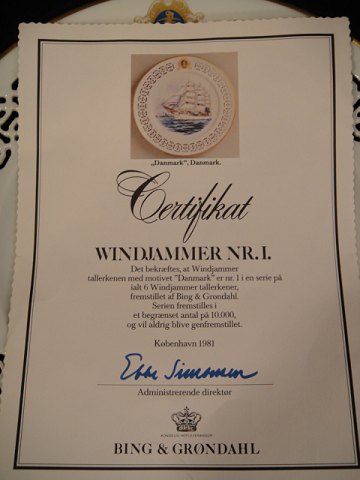motiv Full-Rigged , "DANMARK" , DANMARK er nr. 1 i en serie af 6 stk. windjammer Tallerkner / platte. nr. 8866/633