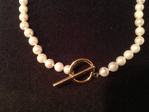Saltwater pearl necklace with 14k. gold lock. Length: 46 cm. 6 mm pearl.
