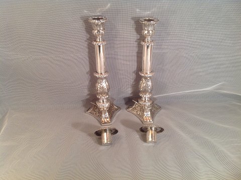 Fremstillede disse stager i 1941, det er et par pragtfulde tre tårnet stager, udformet med trekantet fod med udsmykning og balusterformet stamme og udformet som kapitæl med blomsterformet papyrus i lyshuset er der lysmanchet.
