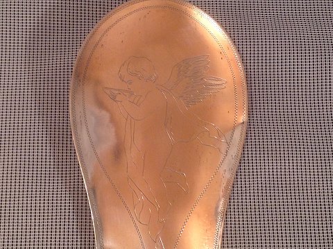 Antique silver cake slice with pattern in laffen, with angel drinking water of a bowl.