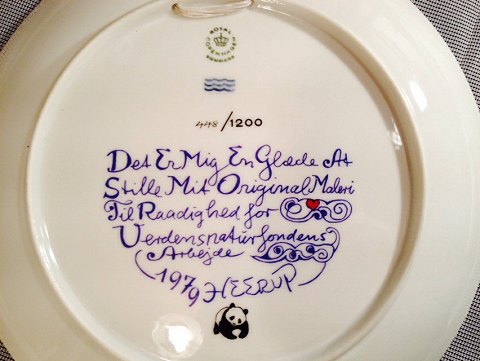 Royal Copenhagen, Heerup. Plate no. 448/1200. For WWF's work 1979. Motif elephant with young