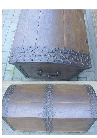 Flot Barok Kiste i egetræ med jernbeslag B:67 cm L:145 cm H:80 cm