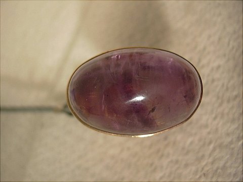 med stor carbonslebet amatyst L: 2,5 cm B:1,6 cm Højde: 1,5 cm