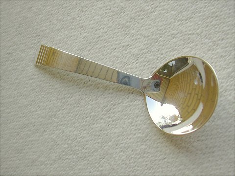 Jam jar glass with silver lid and silver spoon Hingelberg.