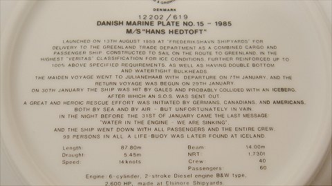 Ship plates B&G Motorskibet Hans Hedtoft 1959 - 1960