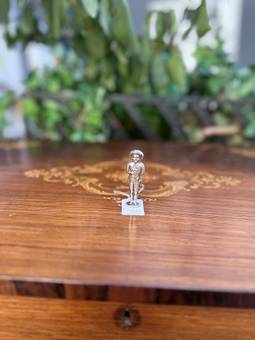 Vintage nålebeholder i sølv , formen en lille figur ( mand i folkedragt , fra 1800 tallet H 5 cm B 1,30 cm