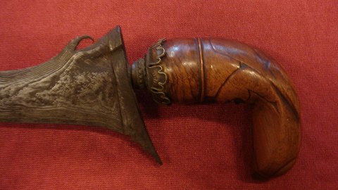 Kris fra Java - Bali med Damasceret klinge udformet som Guddommen Rascka