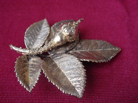 Flora Danica Broche i form af Rosenknup Forgyldt Sølv H: 6,5 cm B:5,5 cm