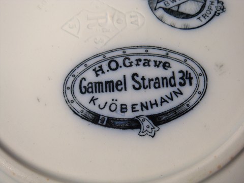 den Danskes importør H.O.Grave Gl.strand 34 Kjøbenhavn han åbnede sit firma i 1855, og blev hurtigt byens største handlende med porcelæn og fajance og netop fra Antik tallerken