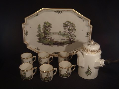 6 coffee cup rc no 31/12333 and coffee pot rc no 3-1231, and Big porcelains tray L: 37 cm B: 27,5 cm