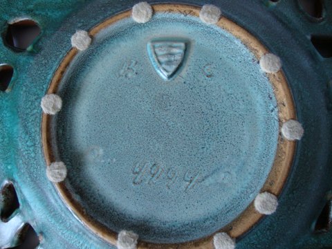Stort Michael Andersen fad, diameter 35,5 cm, højde 7 cm. grøn skål med dyremotiver rundt om. SOLGT