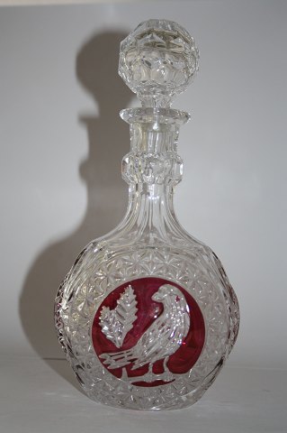 Bøhmisk krystalkaraffel. Motiv fugl. højde 27 cm. hel og fin stand. Pris 425 solgt.