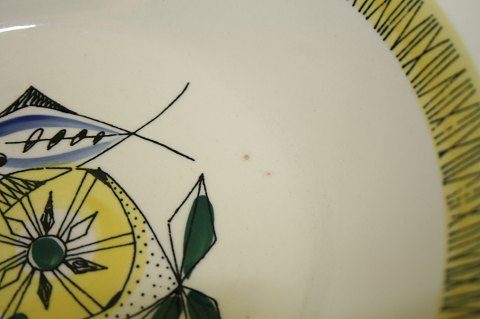Flamingo ildfastserie fra Stavangerflint i Norge. Skål med ører. Nr.2011/2. Højde 5 cm. Omkreds med ører 24 cm. 2 brændingsfejl se foto 2. Pris: SOLGT