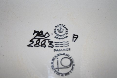 Royal Copenhagen, kunstfajance, Baca fade designet af Johanne Gerber. Lille fad 16x16x3 cm. dek. nr. 780/2883. Pris: SOLGT Stort fad 22x22x4 cm. dek. nr. 780/2884. Pris: SOLGT