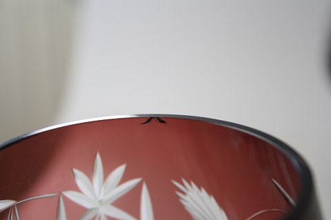 Bøhmisk krystal. Bordeauxfarvede cognacglas. Højde 13 cm. 4 stk. Det ene med indvendigt afslag, se ekstra foto. sælges samlet. Pris: 350 kr.