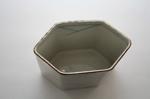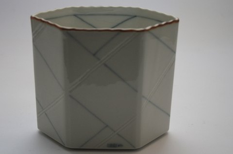 Den Kongelige Porcelænsfabrik, Floreana asymetrisk sekskantet vase designet af Anne Marie Trolle. Højde 12, 5 cm. Længde 14 cm. Bredde 7,5 cm. Pris: