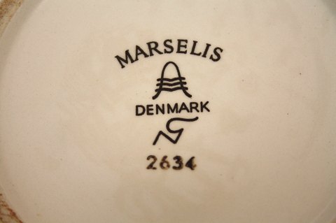 Aluminia, Marselis, kunststengods designet af Nils Thorsson i perioden 1953-1960. Vase i gullig/cremet mat glasur med rudermønster. Dek. nr. 2634. Højde 17 cm. Diameter 12 cm. God stand.
