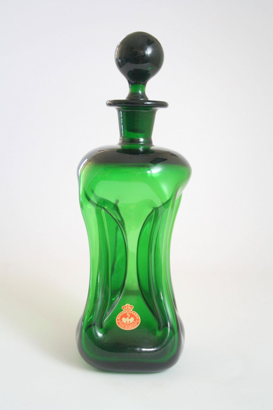 Grøn karaffel højde 23 cm. fin og hel stand. Holmegaard glasværk.