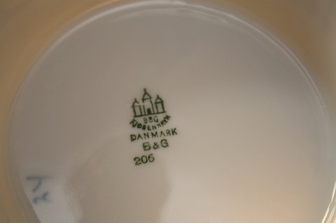 Bing & Grøndahl, Empire, hvidt porcelæn med blå ranker. Lav opsats. nr. 206. Diameter 24 cm. Højde 7 cm. Pris: 450 kr. stk. Lager: 1