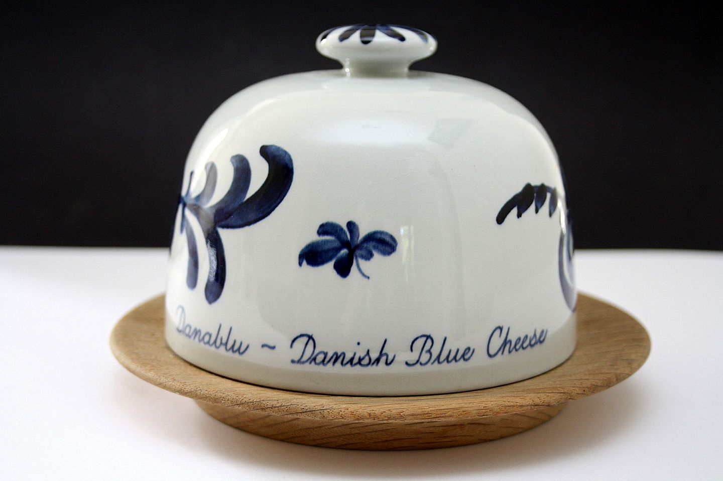 Osteklokke med påskriften Danablu- Danish Blue Cheese, Højde 12 cm. diameter 13 cm. T