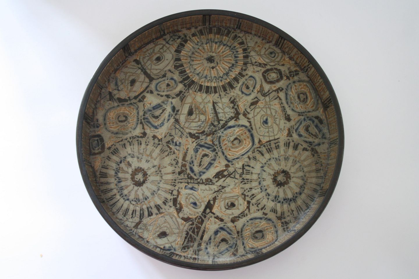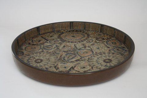 Royal Copenhagen Fajance, Baca. Kunststengods. Designet af Nils Thorson. Stort rundt fad. Nr. 870/3293. Diameter 33 cm. Pris: SOLGT