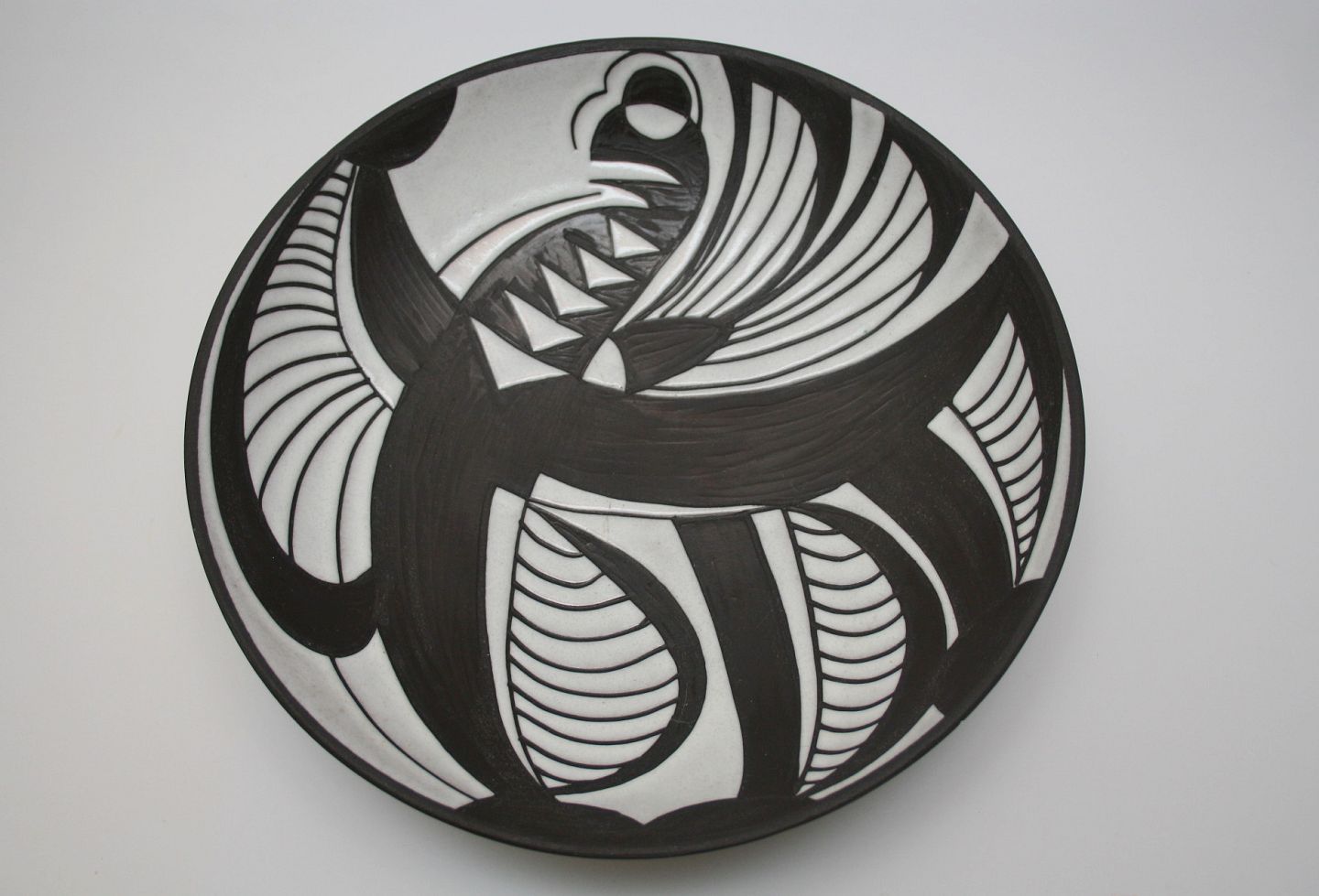 Michael Andersen, Bornholm glasseret negroserie, sort stentøj med hvid glasering. Designet af Marianne Starck i midten af 1950'erne. solgt