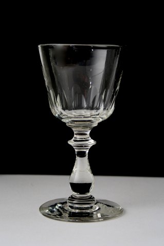 Mathilde Portvinglas med olivslibning, og massiv baluster stilk. Højde 11 cm. Pris: 85 kr. stk. Lager: 5