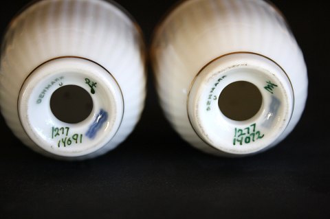 Royal Copenhagen, Tunna designet af Thorkild Olsen. Salt og pebersæt. Højde 6 cm. Diameter 5 cm. Med nye gummipropper. Sælges samlet. Pris: 300 kr. pr. sæt. Lager: 1 sæt