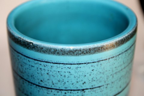 Knabstrup keramik i turkisblåt med sorte striber.