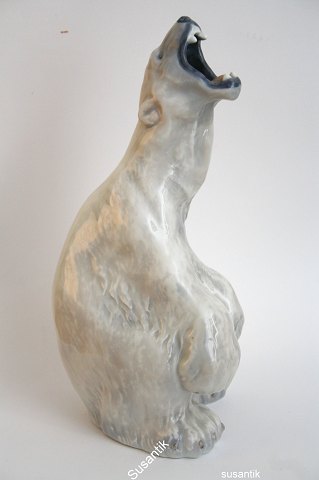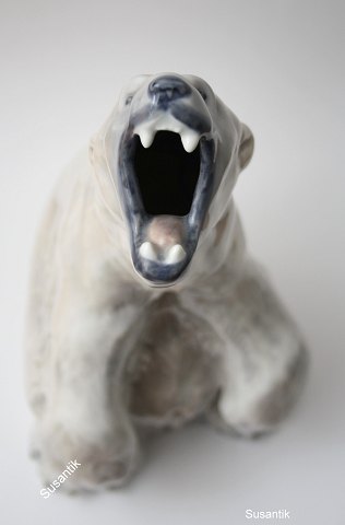 Royal Copenhagen, Brølende, siddende isbjørn. Nr. 502. Formgivet af C.F. Liisberg fra 1894 og frem. Mål: 31,8 x 14,5 x 8,5 cm. I. sortering