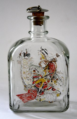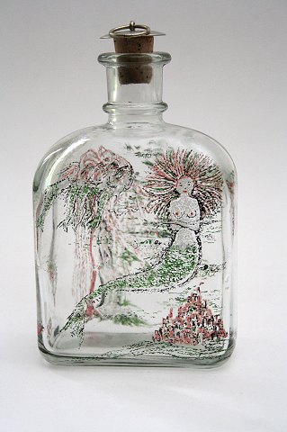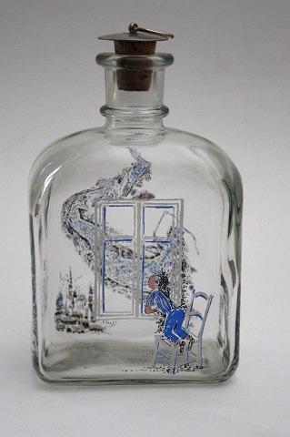 Holmegaard, karafler med motiver fra H.C. Andersens eventyr. Dekoreret af Lars Bo. Højde 18 cm. Pris: 250 kr. pr. stk.