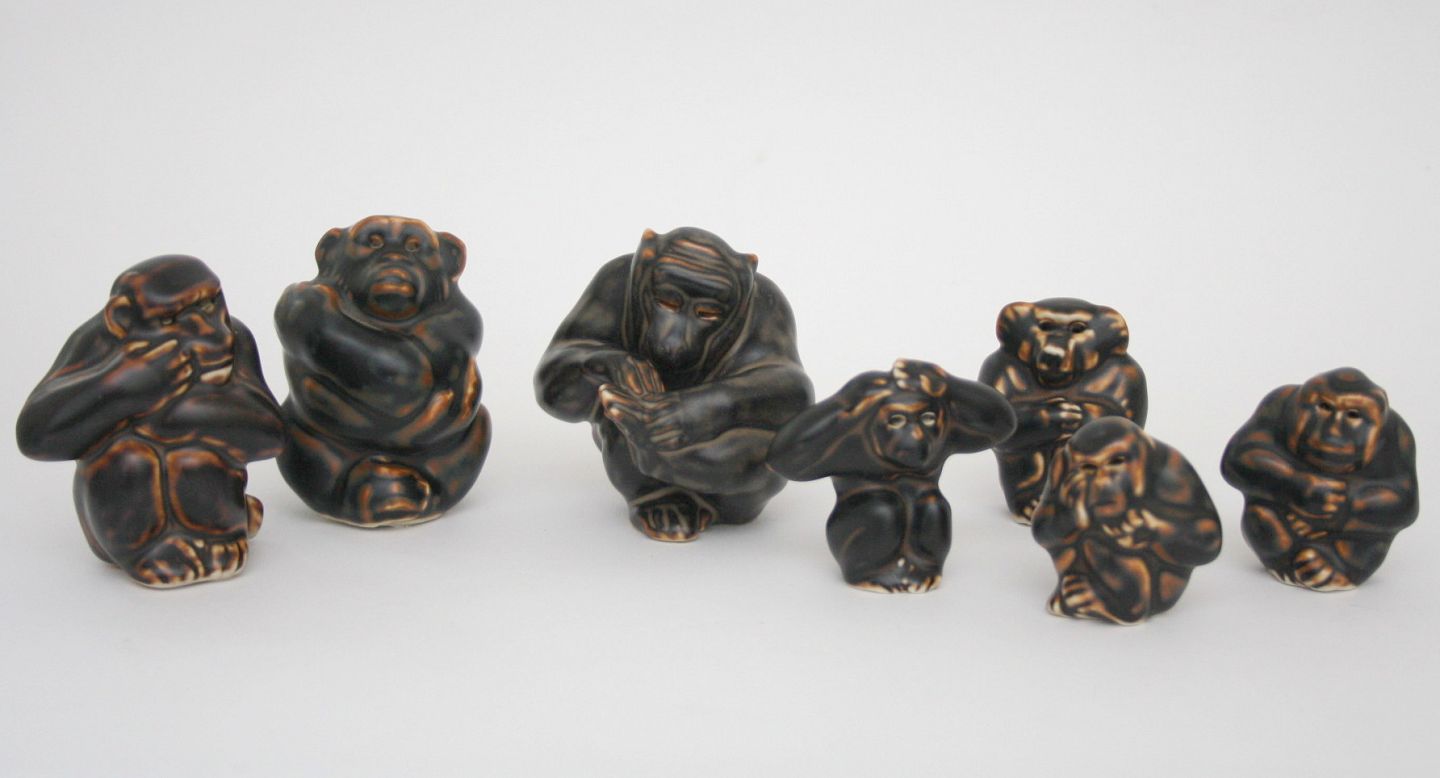 3. t.v. Siddende ser på fod. Dek. nr. 20211. Højde 8,5 cm. Pris: SOLGT