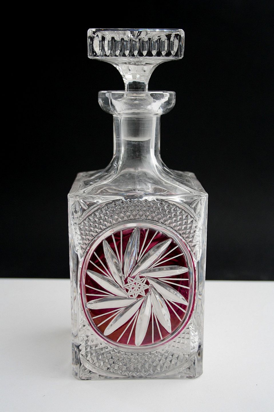Bøhmisk whiskykaraffel. Højde 25 cm. Bredde 10 x 10 cm. Flot stand. SOLGT