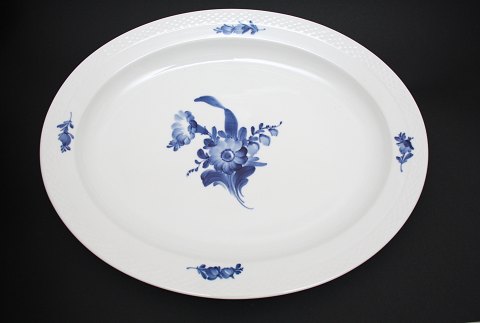 Holmegaard, Broksø presset glas 1938-1941, designet af Jacob E Bang. Mørkeblå flad skål. Diameter 25 cm. Højde 5,2 cm. Pris: