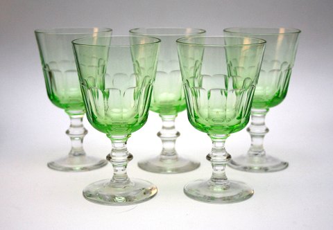 Chr. d. 8. / Berlinois med slibninger grønne hvidvinsglas, højde 13 cm. diameter 7,2 cm. Pris: SOLGT