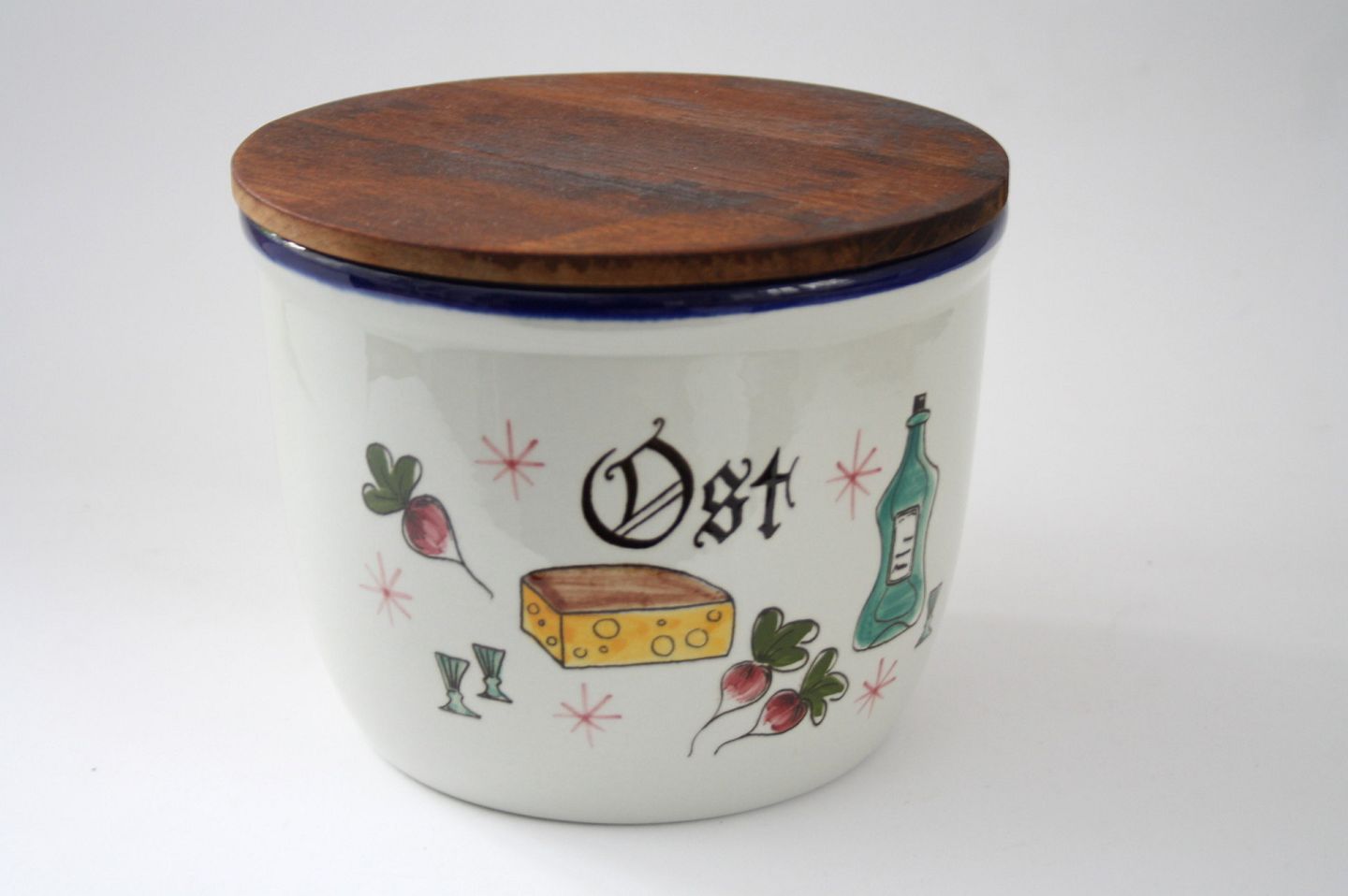 Knabstrup ostekrukke fra Pernille serien, højde med låg 14,5 cm. Diameter 18 cm. fin og hel stand Pris SOLGT