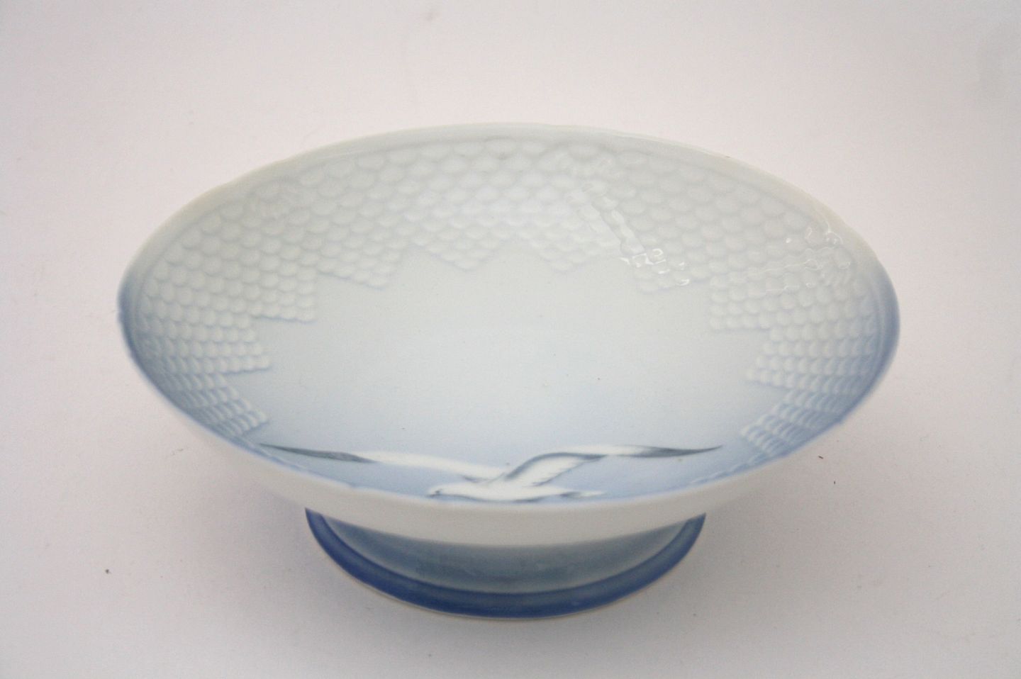 Bing & Grøndahl, Måge uden guld. Kageopsats på lav fod. Dek.nr. 428. Højde 6,5 cm. Diameter 20 cm. II. sortering. Pris: SOLGT