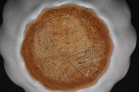 Michael Andersen, Bornholm. Marmeladekrukke i hvid mat glasur. Formnr. 4596. Højde 12 cm. Diameter 12 cm. Flot stand udvendig. Krakeleringer indvendig. Pris: SOLGT