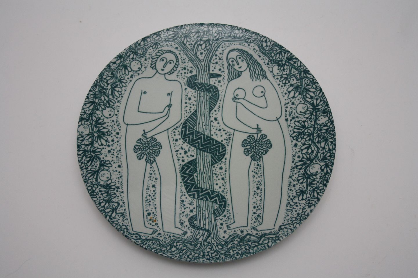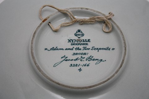 Nymølle, Jacob E Bang, "Adam and the two Serpents". 3251-166. II. sortering. Grøn platte med Adam og Eva ved Kundskabens træ.