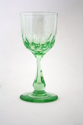 Holmegaard med flere, Edward er et Derby glas med høj kumme. Oliveslebet kumme, facetslebet stilk, rundslebet i bunden. Edvard optræder første gang i Holmegaards kataloget i 1900. Fantastisk smukke grønne vinglas. Højde 12,5 cm. Pris: SOLGT
