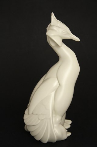 Bing & Grøndahl, Tranelignende fugl med unger i hvid mat glasur. I. sortering. Højde 22 cm. Sjælden. Perfekt stand. Pris: 3000 kr.