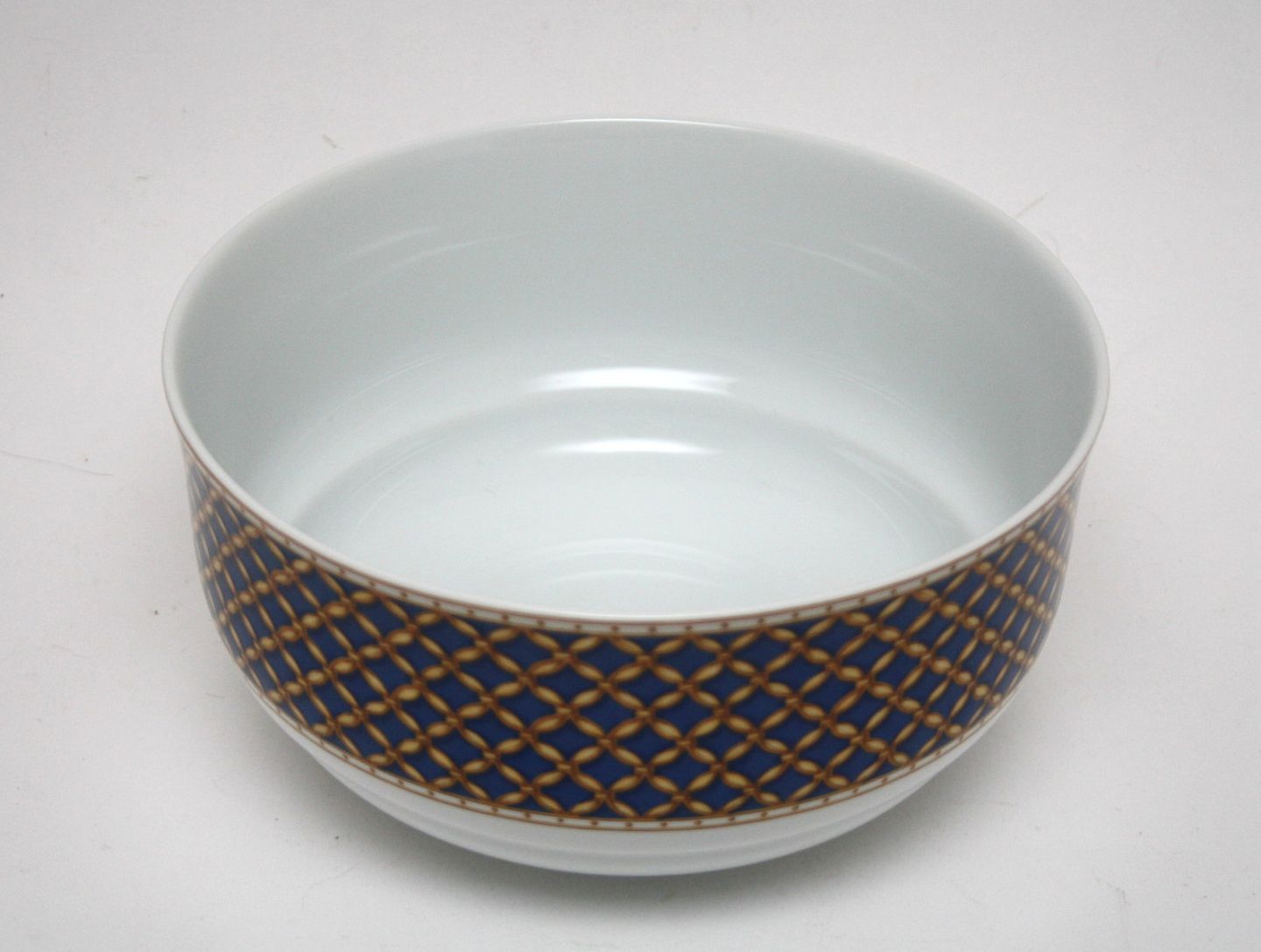 Kartoffelskål. Mørkeblå med tern og guld. Dek.nr. 579. Diameter 22 cm. Højde 11,5 cm. Pris: SOLGT