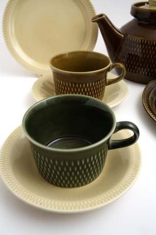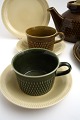 Grøn kop med gul eller grøn underkop. Højde 6 cm. Pris: SOLGT