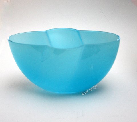 1. Vase med krydsslibninger. Højde 11,5 cm. Ujævnheder i kanten og kalkaflejring. Pris: 200 kr.